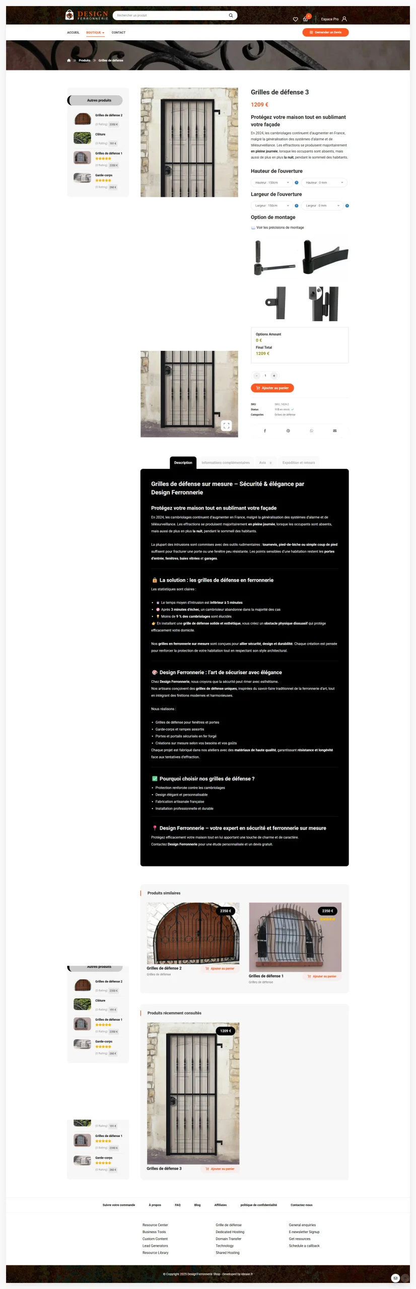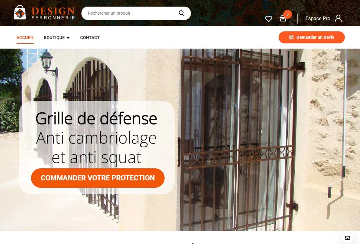 En complément du site vitrine Design Ferronnerie, IDEAXE a développé une boutique e-commerce dédiée à la vente de pièces de ferronnerie d'art en série limitée. Ce second projet illustre la capacité de notre agence à créer des écosystèmes digitaux cohérents pour un même client.